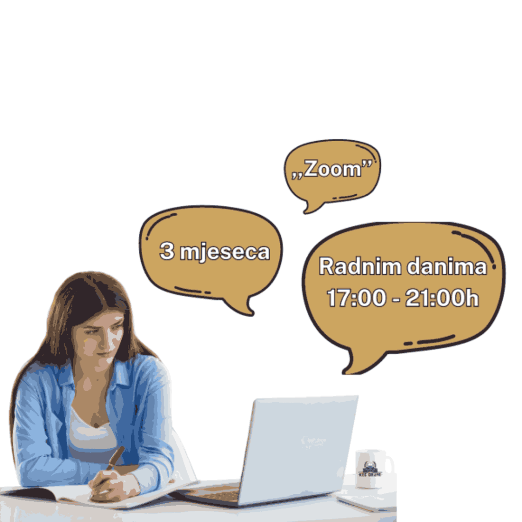 Predavanja se održavaju online, putem platforme ”Zoom” radnim danima od 17:00h – 21:00h i traju ukupno tri mjeseca. Razumijemo da većina vas ima radne obaveze, stoga smo pažljivo prilagodili raspored predavanja kako bismo vam olakšali pristup pripremama.